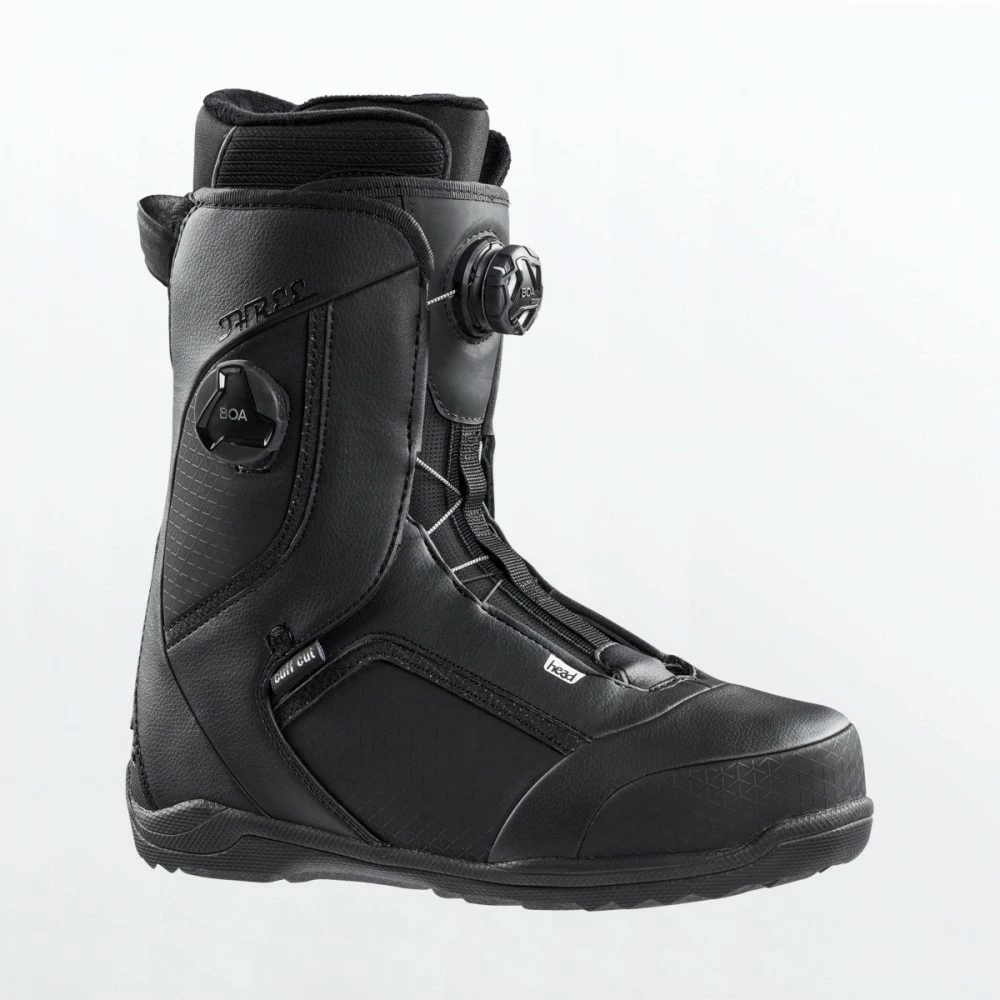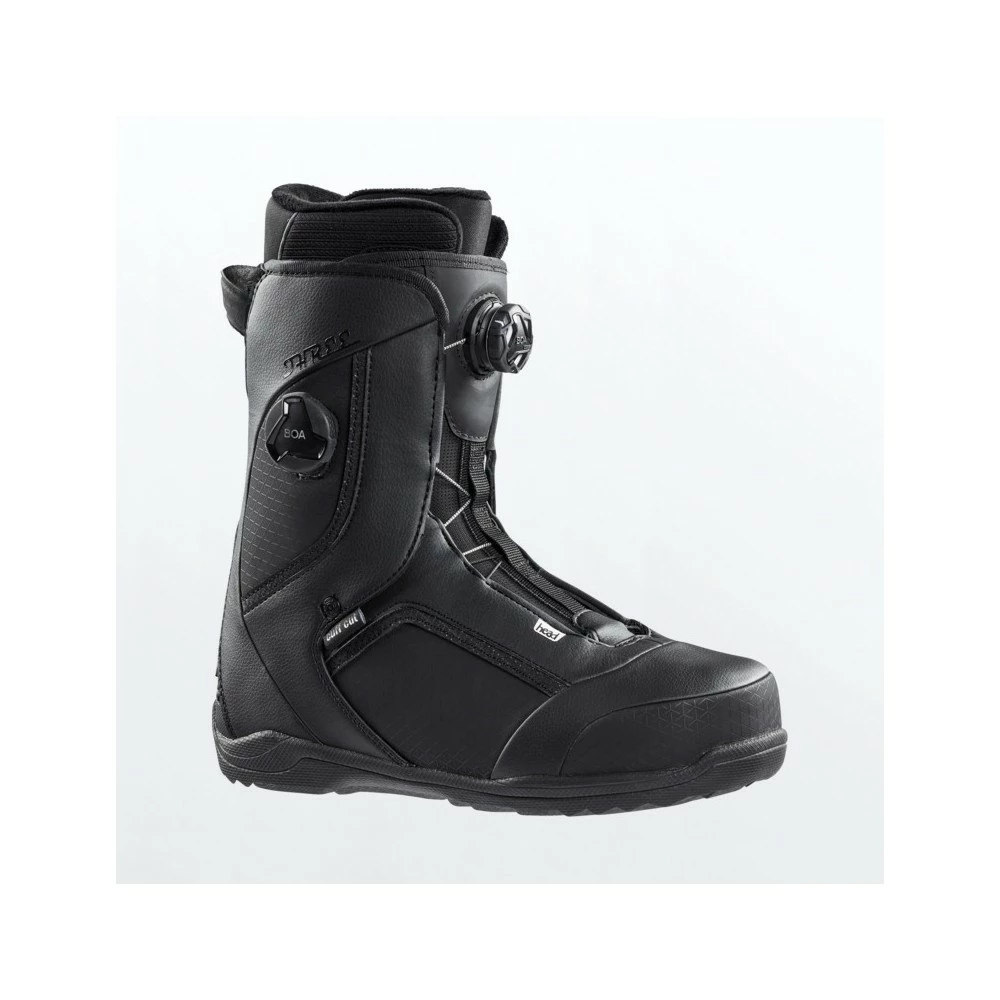 La THREE LYT BOA FOCUS est une botte confortable et facile à piloter avec un flex moyen et une légère inclinaison vers l’avant. La doublure Perfect Fit a un ajustement incroyablement adaptatif, sans points de pincement, tandis que les deux cadrans BOA® créent des zones réglables indépendamment pour un ajustement personnalisé avec une pression variable sur l’avant-pied et la partie supérieure. La construction Cuff Cut offre un confort et un ajustement parfait sans bomber et la semelle extérieure Treadlyt ajoute de la légèreté et de l’adhérence dans toutes les conditions.