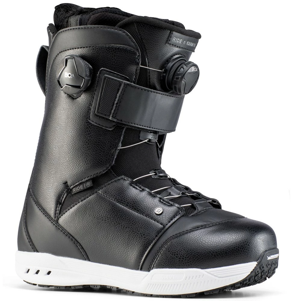 Fitted with Intuition™ Mobile Wrap Liner. The Tongue Tied BOA® Focus Closure provides a two-zone closure system for ultimate heel hold and precise fit. Tongue Tied™ delivers a secure fit in the ankle and eliminates the need for a traditional harness. Adjustable Power Strap offers added support and response. C.A.T. technology allows for a custom fit in the calf zone for increased comfort. Michelin® Fiberlite Sole combines rubber with a +Slime Midsole for traction and cushioning. The Karmyn is designed as a stiffer flexing freestyle snowboard boot.