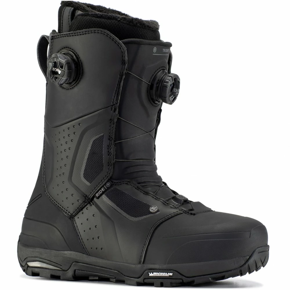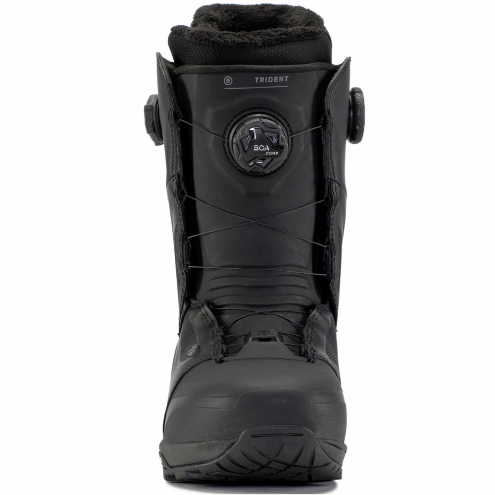 The Trident is a boot made to fit even the pickiest foot. The 3 boas provide for infinite adjustability for the perfect combination of comfort and performance. One boa to manage the Tongue Tied system that holds the narrowest heels in place. Then one boa for the upper of the boot, and another boa for the lower foot. Fitted with Intuition™ Dream Wrap Liner. The Boa® Tongue Tied™ system combined with H4 Boa® Focus provides a two-zone precise fit system for ultimate heel hold. Tongue Tied™ delivers a secure micro-adjustable fit in the ankle and eliminates the need for a traditional harness. Flex Slime Tongue™ provides rebound and damping. Michelin® Peak Outsole combines rubber and phylon for lightweight winter traction. The Trident features a triple Boa® system and a stiff flex for response and all-mountain performance. If you can’t seem to get a boot that fits perfectly, the Trident is the boot for you.