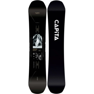 Le meilleur de Capita seulement que Supercharged. Le Super D.O.A. a une base plus rapide, un noyau plus léger et un stratifié plus rigide, se distinguant du DOA normal. Les parois latérales en Kevlar robuste et un laminé de lin tissé (Amplitex) rendent cette planche extrêmement solide et résistante. Tout comme le DOA, le SuperDoa est un camber twin avec un tip et tail plat. Convient aux riders de niveau avancé (ou plus), mais peut aussi être utilisé comme une planche haute performance pour du all-mountain.