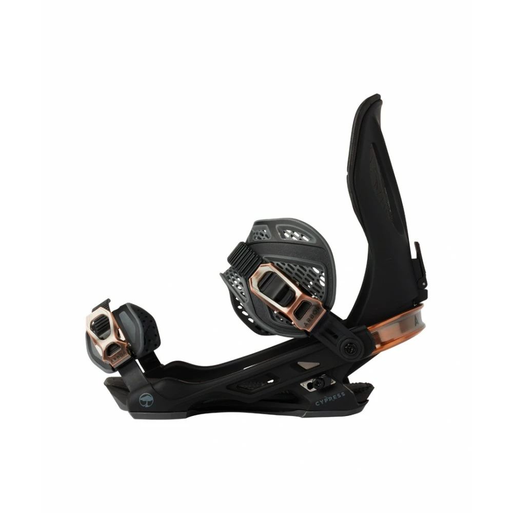Le Cypress est une conception freeride pour les riders qui aiment leurs lignes un peu plus tapageuses et leurs terrains de jeux plus grands. Nous avons créé une fixation puissante en rigidifiant notre plaque de base exclusive System X avec le double de fibre de verre ; l’ajout d’un spoiler plus léger, plus rigide et plus porteur latéralement ; et en renforçant la semelle extérieure. Cela se traduit par des performances à grande vitesse et en grande montagne.