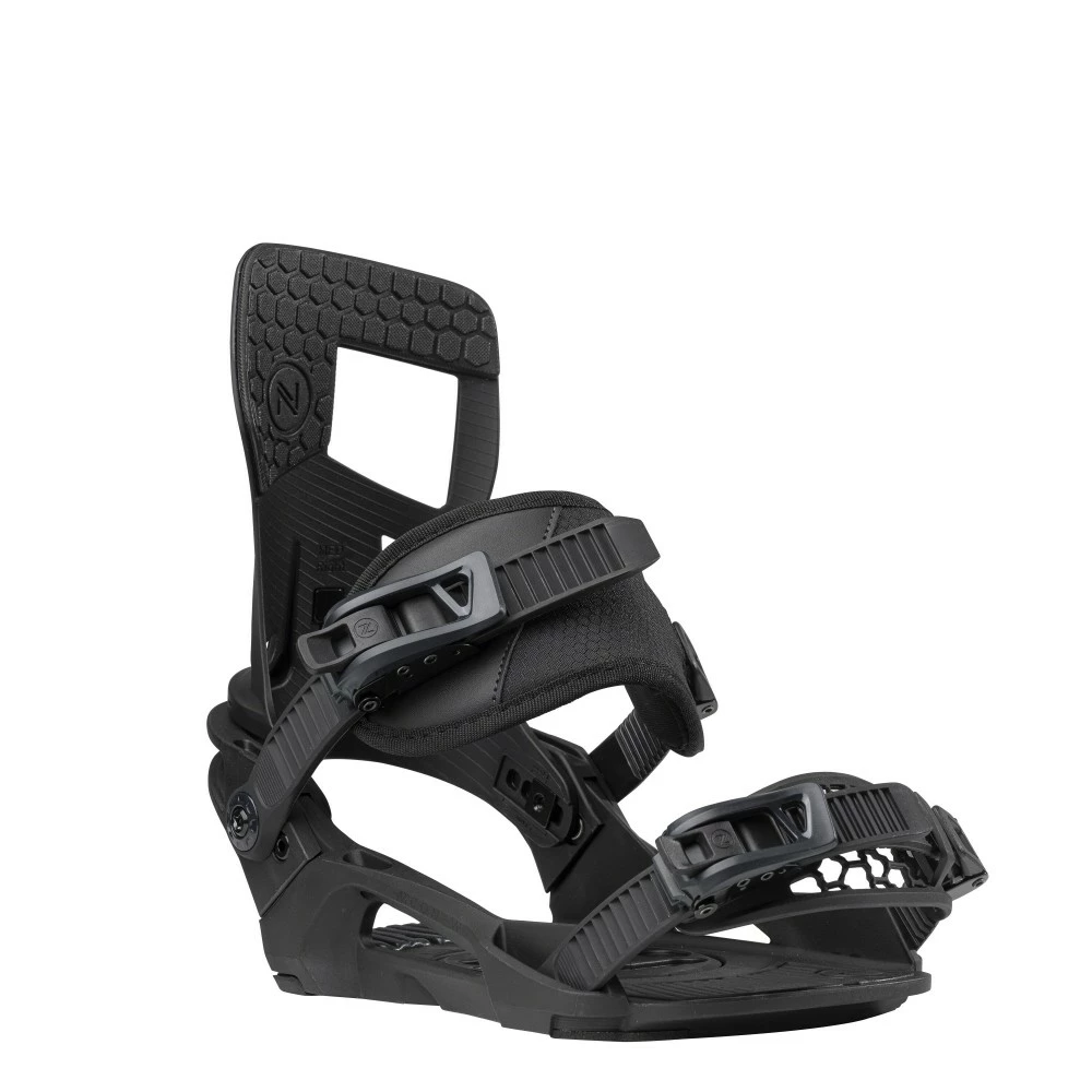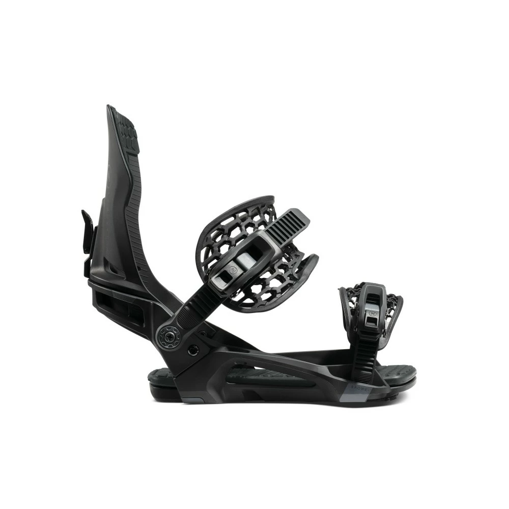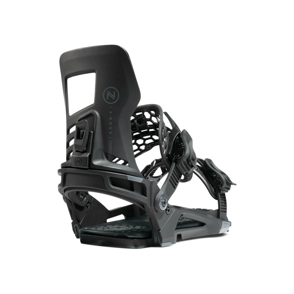 La Kaon-X, chargée de technologies, est une favorite de l’équipe Nidecker offrant un mélange idéal de jeu, de confort et de réactivité. La performance commence par l’ajustement, nous avons donc adapté l’embase et le spoiler à la forme de nos boots en utilisant un design asymétrique que nous appelons FlowFit. Associé aux sangles AuxTech – qui utilisent une configuration articulée exclusive pour s’enrouler uniformément autour de votre pied – le système offre un ajustement parfait et un contrôle des carres impressionnant. Lorsque vous voulez engendrer des virages plus lâches de style surf ou faire preuve de créativité dans le parc, la Kaon-X a toutes les fonctions dont vous avez besoin. C’est un modèle classique à deux sangles, avec des matériaux légers et suffisamment de flex latéral pour lancer des tricks. Les cliquets Axion en aluminium super résistants peuvent supporter les chocs les plus lourds et permettre une entrée et une sortie ultra-rapides à chaque fois. Nous l’avons complétée avec une assise plantaire en EVA, sur toute la longueur, pour amortir les atterrissages, comprenant 2 degrés d’inclinaison pour une ergonomie améliorée. Une fixation avec un excellent rapport qualité – prix idéale pour la progression.