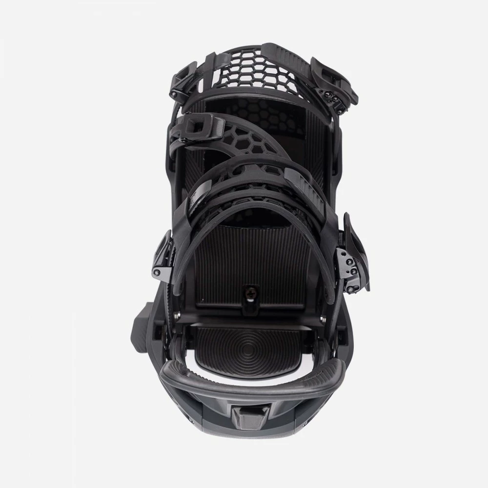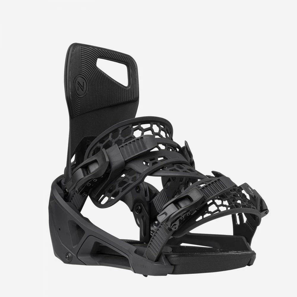 Pour entrer dans la fixation, il suffit d’insérer le pied par l’arrière et d’appuyer sur la pédale du talon pour engager automatiquement la fixation. Le processus de sortie est tout aussi facile, grâce à un simple levier de déverrouillage. La fixation est équipée de straps confortables avec le même design AuxTech que celui des fixations haut de gamme traditionnelles de Nidecker. Une fois ajustés, les straps peuvent être verrouillés à l’aide des cliquets de verrouillage en aluminium pour un ajustement parfait à chaque utilisation.